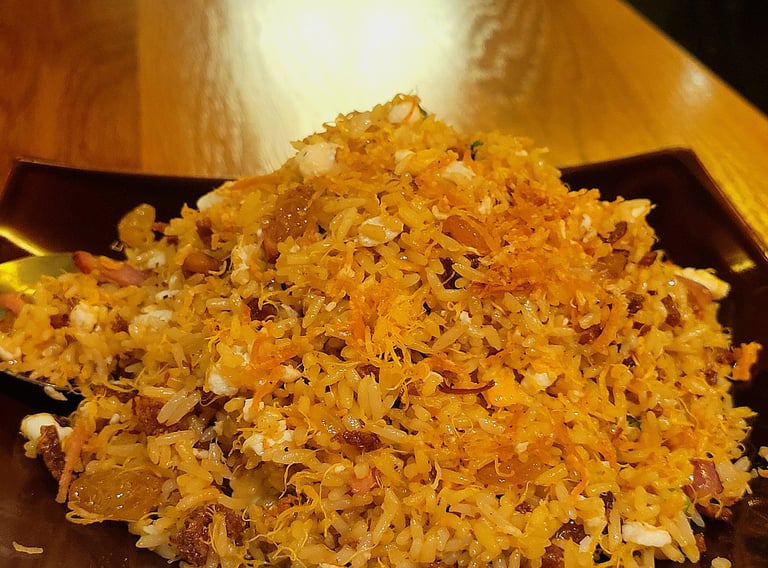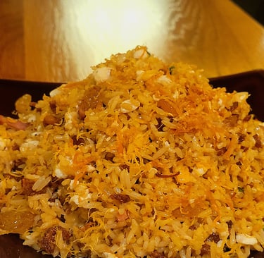 The golden egg fried rice serves as a stabilizer. A reminder that I can cut this tingly torture with an ingredient forbidden to me by religion, sweet morsels of scallops. These cream-colored treasures I was unaware of, peaked through the golden granules. Where does my disobedience towards a higher power fit in a story about growth?